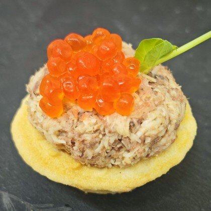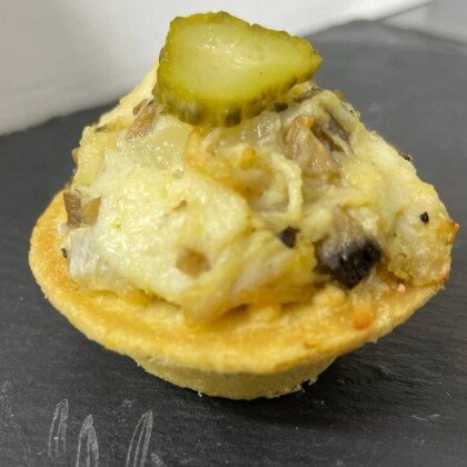 - Тарталетка песочная - Колбаса с/к - Корнишон - Сыр творожный ЗАКАЗ ОТ 6 ШТ