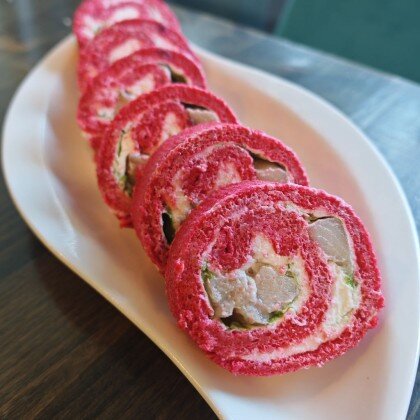 Рулет из лаваша с крабовым мясом, сыром и яйцом